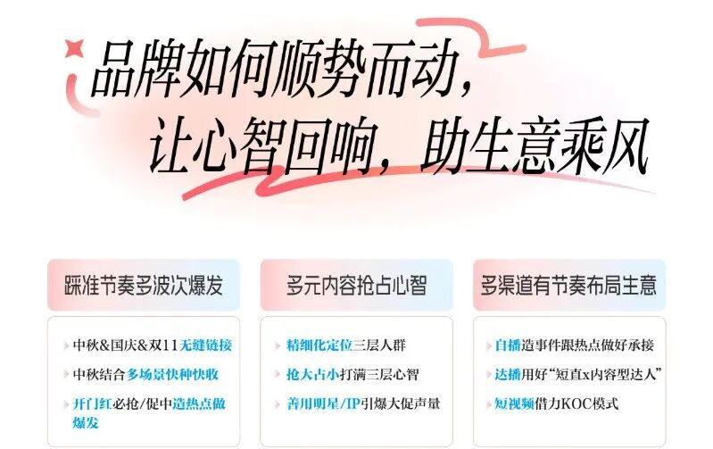 作为日活超6亿的消费趋势场和品牌生意场,抖音本身就是品牌心智营销的首选平台,而巨量引擎自身丰富的营销资源玩法、产品工具等,也已成为助力品牌做好心智经营的新引擎,更多品牌商家正以“节奏-内容-渠道”三步走,在做好大促生意爆发的同时,看见确定性的长效增长。