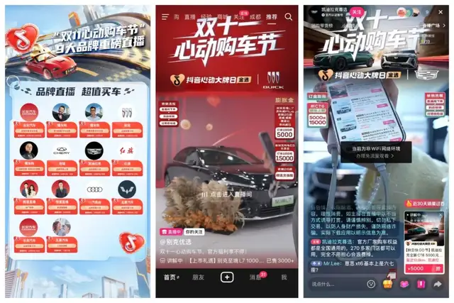 在这样的效率之下,也就不难理解,为什么今年双十一,车企全都在卖力做直播间了。我甚至看到抖音生活服务做了个“双十一心动购车节”,联合9大品牌,覆盖了四十多个主流车型,提供了百万补贴。