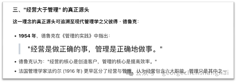 在国内管理界和网文中,很多人甚至将这个说法溯源到彼得·德鲁克,如果你去问豆包、DeepSeek等大模型,都会得到这样的回答: