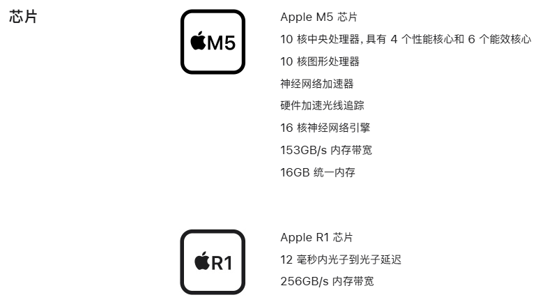 头戴设备多芯协同不是个例,比如苹果的 Vision Pro 就是分别用了一颗 M5 和 R1 芯片来运作的。