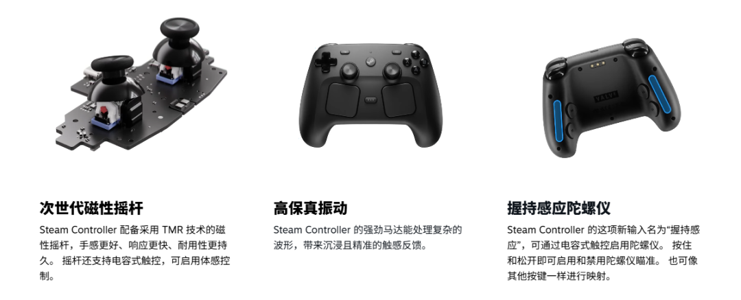 最后,再带大家瞧一眼这次新出的手柄 Steam Controller ,基本上就是在沿用 Steam Deck 的手柄逻辑。