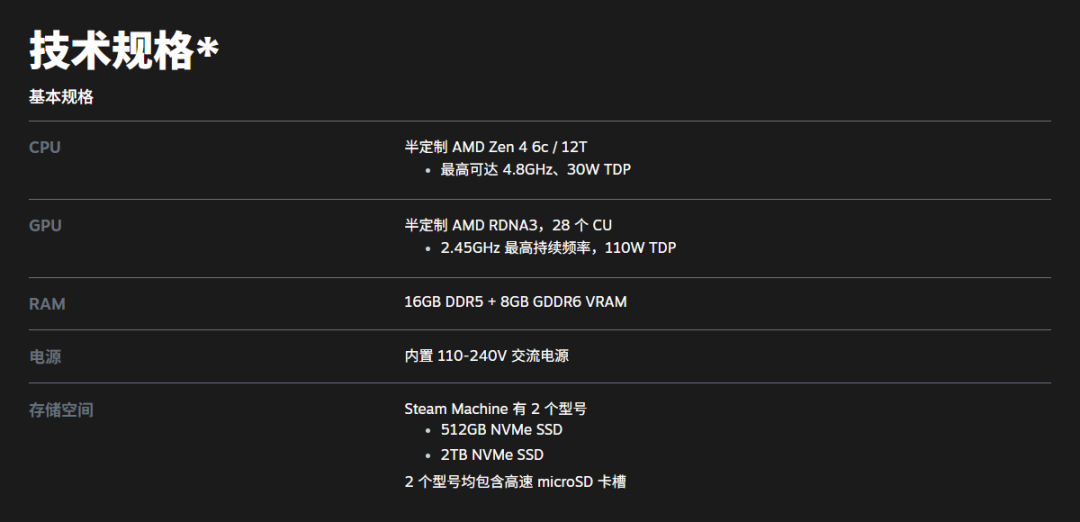 CPU 看上去倒还不错,频率有足足 4.8GHz ,用上了 6 核 12 线程以及 Zen 4 架构,而 PS5 和 XSX 还在用 Zen 2 架构,所以你反而不用担心它的 CPU 性能。