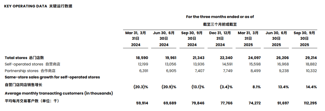依靠这一系列动作,瑞幸在第三季度新增了4200万用户,月均交易客户超过1.1亿,均创历史新高,自营门店的同店销售也获得了14.4%的同比增长。