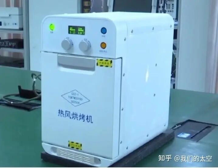 这次烹饪用的烤炉,学名「热风烘烤机」,由中国航天员科研训练中心与九阳联合研制。本乌鸦觉得,这根本就是太空版「空气炸锅」,当然它的外观是有点像个马弗炉了,比较朴素,低调低调。毕竟,这是全太阳系最高级、最环保、最豪华的空气炸锅了,它的耀眼无需外观来展现。