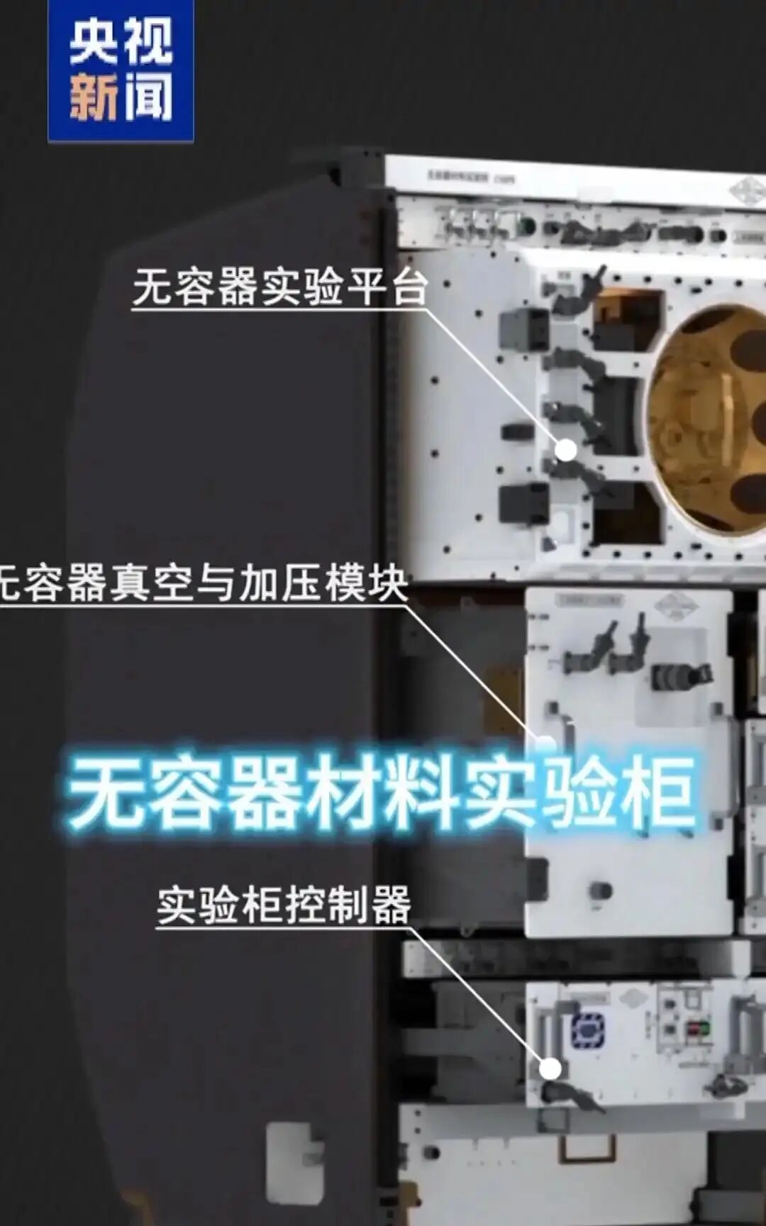 「太空炼丹炉」,一种失重环境下的的无容器材料加热柜,成功将钨合金加热至3100℃,为什么说它牛逼呢,因为在地面上没有容器能盛装3100℃的金属液,同时还能保证无其他微量元素污染,这项技术是未来制造更耐高温航空发动机和高超音速飞行器材料的关键,说白了,就是太空金属冶炼和太空材料制造工业的起点!