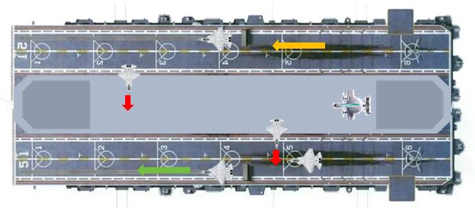 - 模式A(起降分离):左舷甲板专司弹射起飞,右舷甲板专司拦阻降落,二者物理隔离,互不干扰,调度复杂度降至最低。