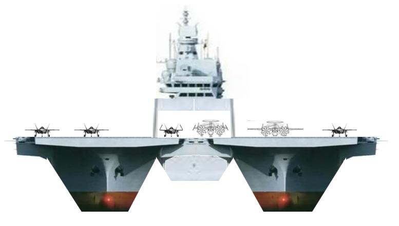 - 舰体宽度:双体设计将导致航母总宽极大,对停靠的港口、船坞提出了新的要求。