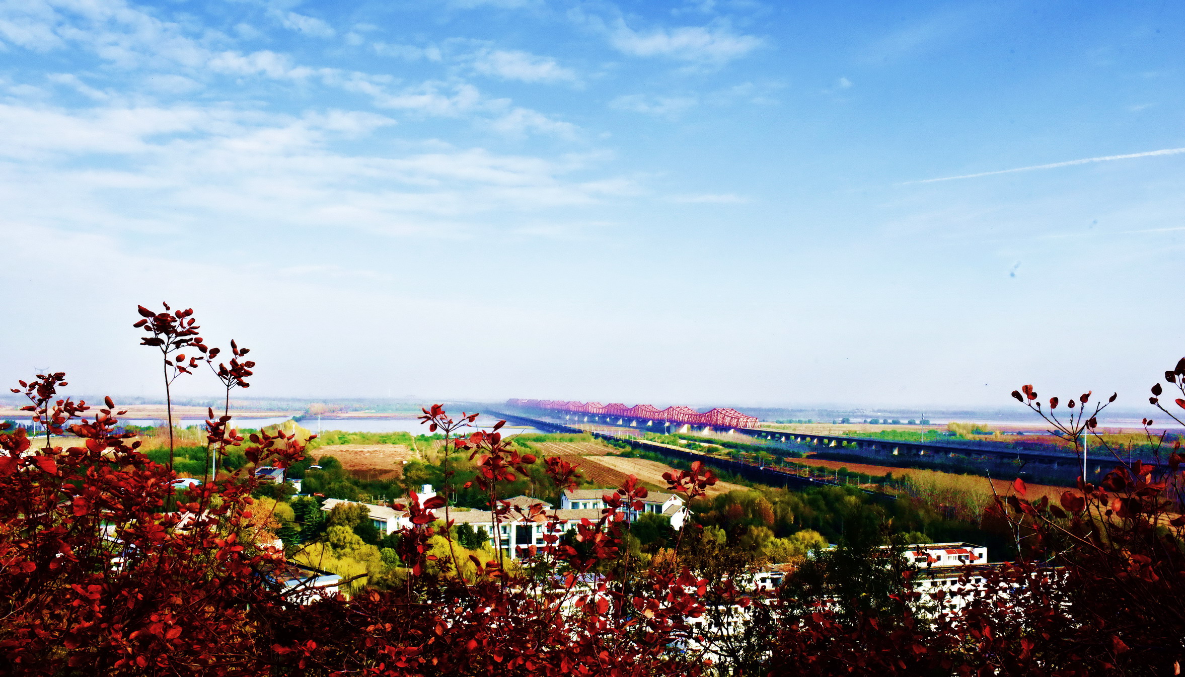 进入园区,妻子向我建议,出来就是锻炼身体的,我们爬山去毛主席视察黄河的地方,我毫不犹豫的同意了妻子建议。站在毛主席铜像边护栏边,向北方放眼望去,黄河铁路大桥就像一条巨龙,横卧在波涛滚滚的黄河之上。毛主席当年为啥要选择攀登小顶山顶视察黄河?我通过百度搜索也未能找到答案。