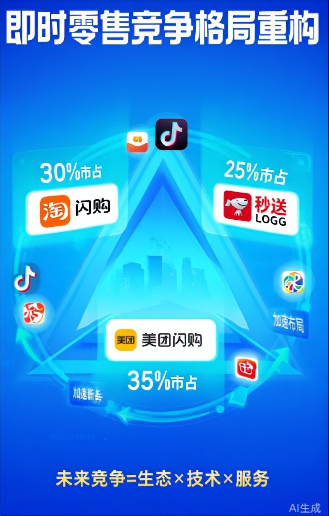 竞争格局重构:即时零售市场将从当前的三足鼎立(淘宝闪购、京东秒送、美团闪购)向更加多元的竞争生态演变。抖音、拼多多等平台正加速布局,线下商超也在强化自有即时配送能力。未来竞争将不再是简单的规模比拼,而是生态、技术、服务的综合较量。