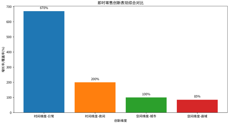 即时零售场景创新体现在时空两个维度。时间上,即时零售实现24小时不间断服务,满足不同时段的消费需求。天猫"双11"首日,淘宝闪购超市便利订单增长670%,夜宵订单同比暴涨200%,显示夜间经济成为即时零售新增长点。**空间上,**即时零售正从城市核心区向县域市场扩展,县域消费者也能享受与城市相近的便捷服务。
