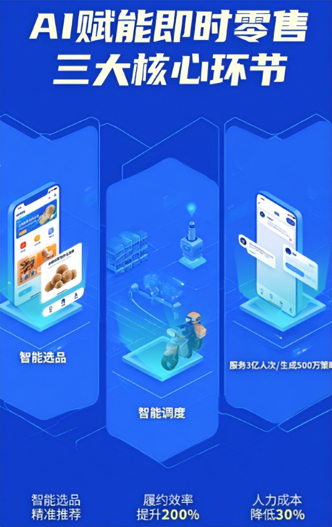 AI技术在即时零售中的应用主要体现在三大环节:智能选品、智能调度和智能服务。在智能选品环节,阿里巴巴将其自主研发的AI模型整合到线上购物应用中,以改进搜索和产品推荐功能。面对"云南特产松茸中哪一款性价比最高"之类的问题,AI不仅能够回答,还能主动推荐商品链接。在智能调度环节,AI技术优化即时零售的履约效率,从仓储布点到系统调度,再到骑手完成"最后一公里”,各环节紧密配合让即买即送成为可能。在智能服务环节,天猫"双11"期间,AI客服累计服务接待3亿人次消费者,淘宝天猫的AI工具"大促小助手"为商家生成500万条大促经营策略,平均帮助节省30%工作量。