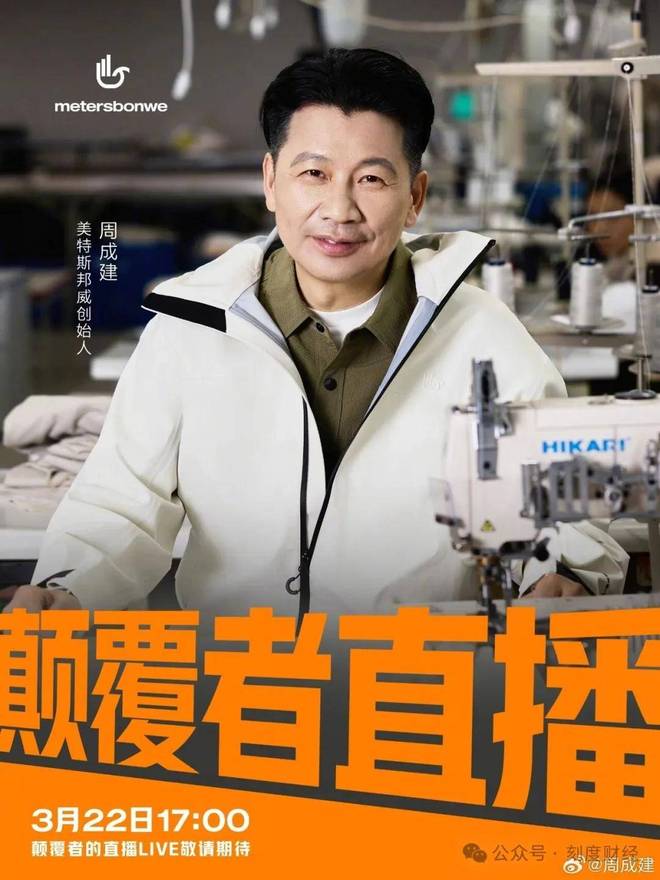 这使得周成建不得不在2024年重新扛起大旗。重回美邦后,周成建加入“创始人网红大军”,自己开直播带货引流,并带动美邦进军当下最热门的户外赛道。