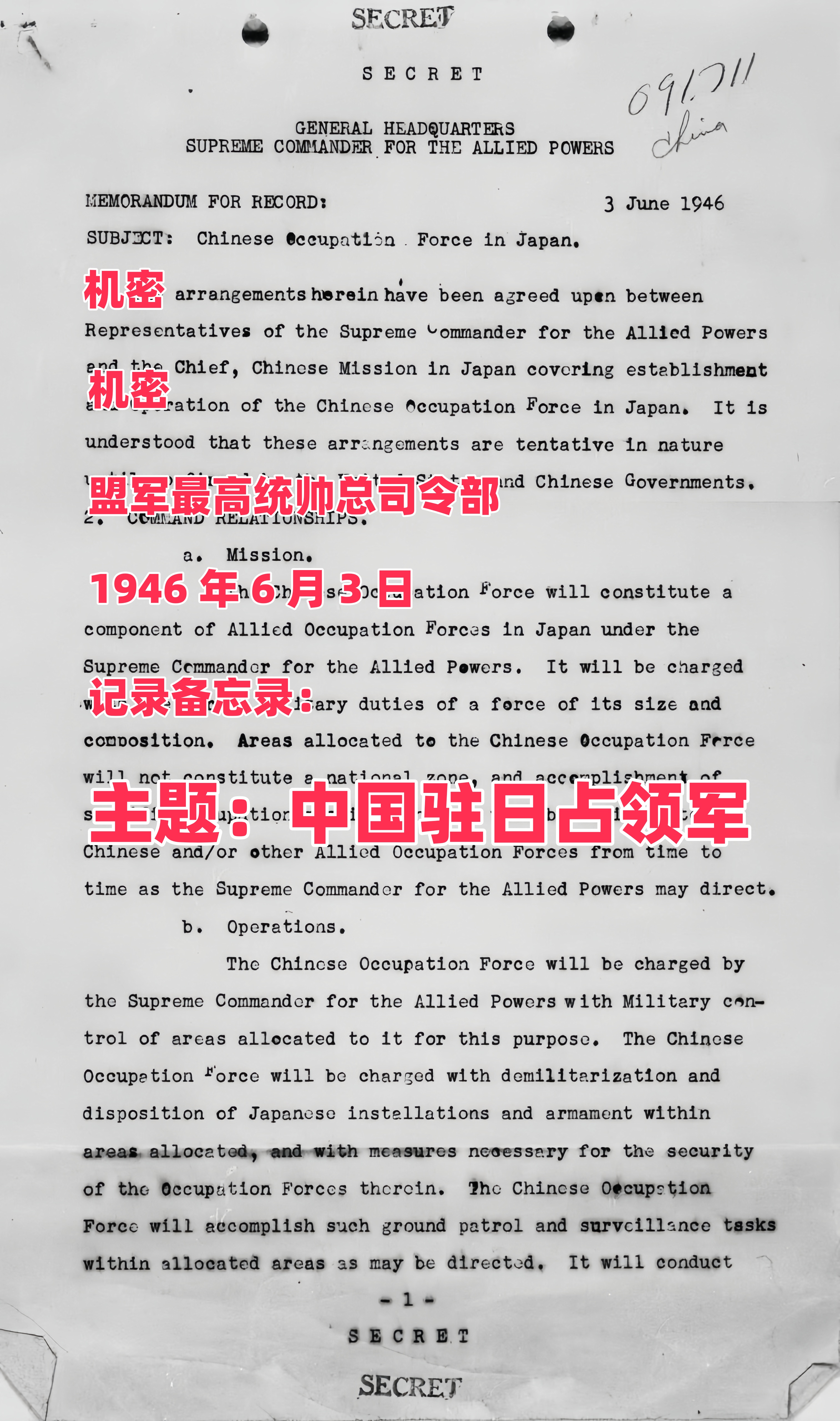 1945年,日本战败投降后,《波茨坦公告》明确划定了战后对日本处置的核心原则,文件中“日本领土经盟国之指定,必须占领”的规定,正式赋予中、美、英、苏四个主要战胜国分区占领日本的合法权利。中国作为抗击日本法西斯时间最长、牺牲最为惨重的东方主战场核心力量,拥有在日本本土的驻军权,这既是战胜国地位的直接体现,也是对日本军国主义侵略行径的必要制衡。在这个背景下,1946年6月,盟军最高统帅代表与中国驻日使团团长朱世明中将正式签署《中国驻日占领军备忘录》,文件以机密级别明确了中国驻日部队的编制规模、驻防区域、核心职责,更以“除非中美双方共同宣布废止,持续有效”这一的刚性条款,固化了中国的合法权利。当时,中国已选定参加过滇缅会战的整编第67师完成驻军培训,日本名古屋也做好了接收中国驻军的准备。然而,由于国民政府将重心转向内战,最终导致驻军日本的计划搁浅。这份承载着历史正义的文件,虽被暂时搁置,但始终未失去法律效力。