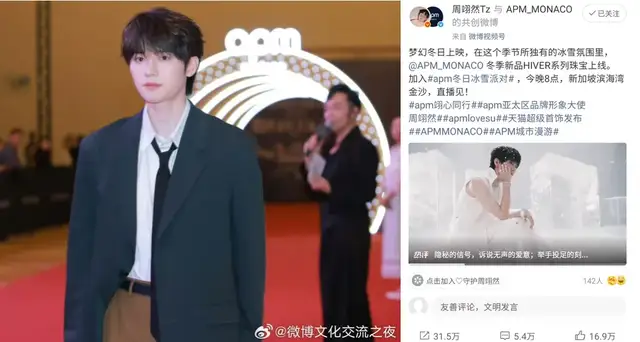 APM亚太区品牌形象大使周翊然在参加盛典同时还和品牌方发布了视频物料。伴随着盛典的进行,相关内容关注度一并发酵,不断扩充品牌的“热门内容资产库”。