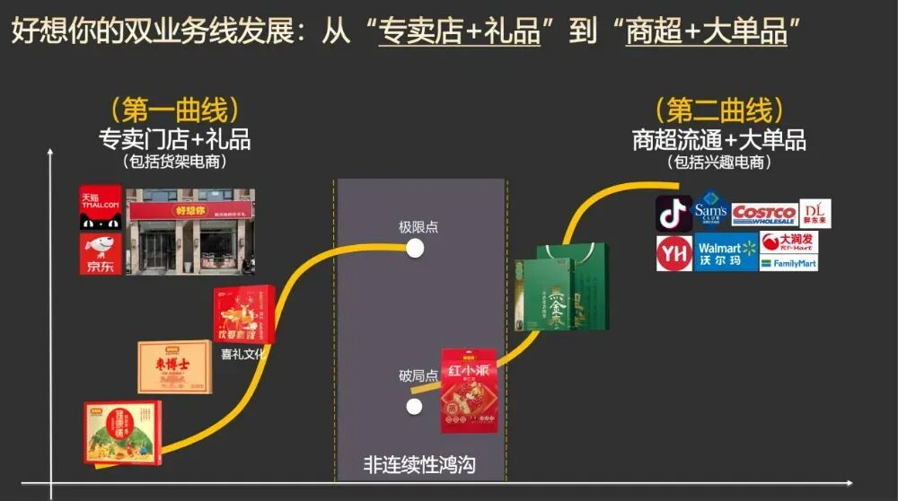 据悉,当“黑金枣”成为渠道爆款后,好想你还在短时间内迅速完成全渠道布局规划,将“黑金枣”从单一渠道爆品发展成为全渠道大单品,进一步带动企业的第二增长曲线。同时,好想你在追求大单品的过程中,也完成了从“专卖店+礼品”的商业模式加“商超+大单品”商业模式的两条腿走路。