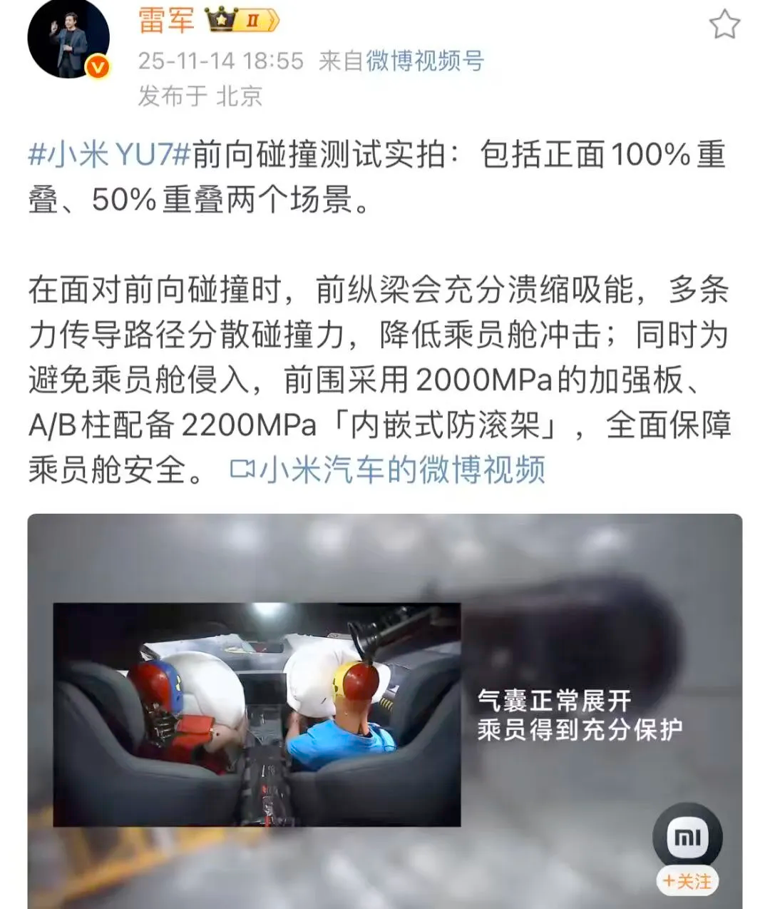 我的个人看法是,评价小米汽车是否安全,要结合诸多因素一块看,包括SU7自称“满足全球最严苛的碰撞测试”的实测结果,包括零百加速2秒级的正负外部性,包括跟其他车企的安全性能对照等。