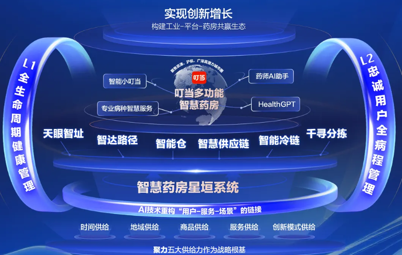各平台和叮当健康合作,就是看中叮当智慧供应链与智慧药房网络,实现了对全域流量的高效承接与服务的确定性交付。