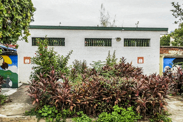 这是11月6日在广西柳州市一处创意园区拍摄的公共卫生间,外墙只有较小的图形用于分辨性别。