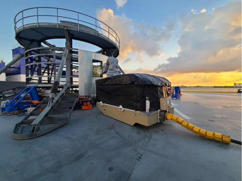 10 月 31 日,ESCAPADE双子火星探测器被封装在有效载荷整流罩中,随后被运至LC-36的蓝源总装厂房。11月5日,杰克琳号回收船从卡纳维拉尔角出发。据蓝源公司透露,杰克琳号到达目标着陆区需4天左右。7日,整流罩连同有效载荷被集成到火箭上。在完成最后阶段的收尾工作和检查后,火箭被运至发射工位。“新格伦”火箭原定于11月9日发射,但因天气问题推迟;后在12日因太阳耀斑引发的太空天气问题再次推迟发射。