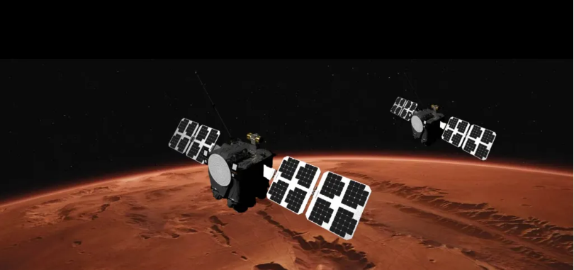 ESCAPADE为NASA火星探测任务,属于NASA小型创新行星探测任务(SIMPLEx),耗资1.074 亿美元(包括运载火箭),由双子火星轨道器“湛蓝”和“金黄”组成。两个火星轨道器结构相同,尺寸均为60cm × 70cm× 90cm,加注燃料后质量535kg,总质量略高于1t,约占“新格伦”火箭运力的15%。