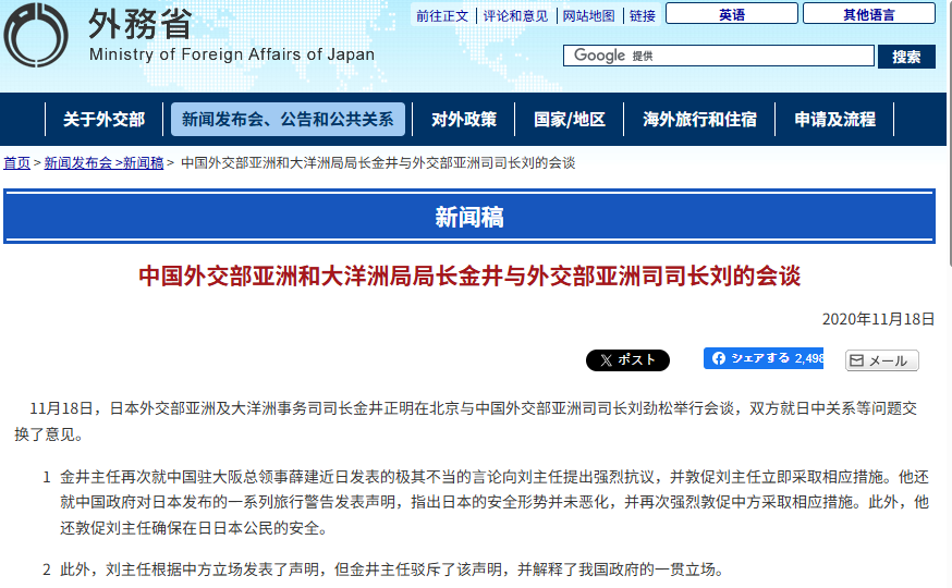 ▲日本外务省官方公开的内容