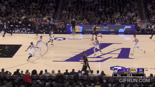 勒布朗今天移动一般——刚复出——但球商在:第三节末,看懂爵士的配合,弱侧换防马卡宁,补位,轮转,干扰马卡宁一发远射。