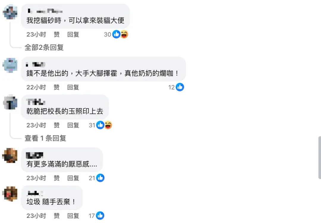 还有岛内网友怒喷台当局:“幼稚到极点”“拿来垫便当刚刚好”“唉!真爱乱花钱!把钱花在治水不是很好”“浪费公帑”“和平还是首选,战争不是游戏,能避才是王道”。