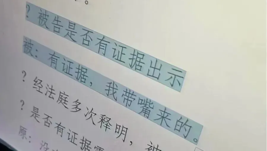 你问证据呢,他说“不需要,被告心里清楚得很”。
