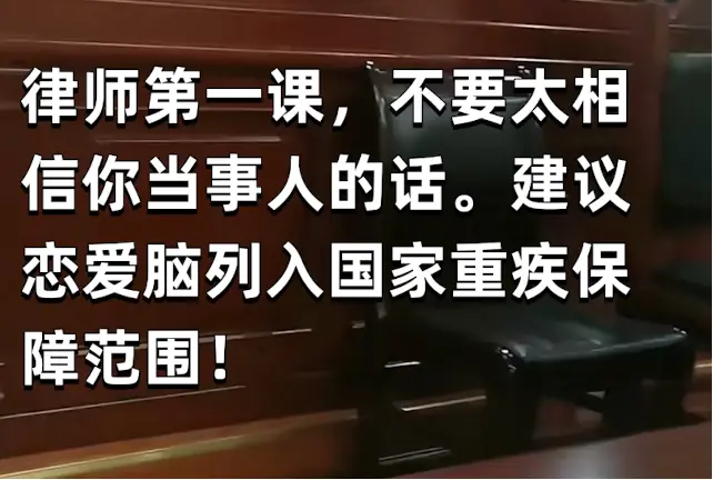 甚至有律师上网科普,律师第一课,不要相信当事人的任何一句话,尤其是恋爱脑。