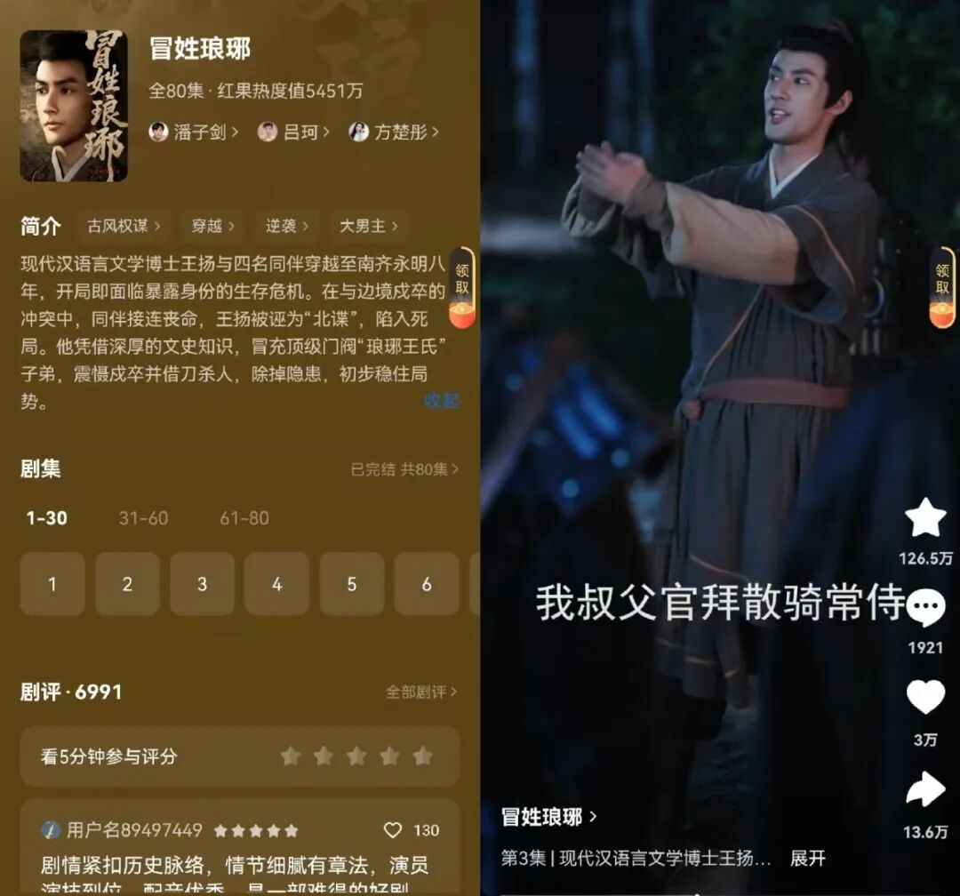 除了短剧必不可少的紧凑节奏和“爽感”,《冒姓琅琊》备受推崇,也是其与大部分短剧的不同之处,在于对于历史和文学的考究和大量运用。