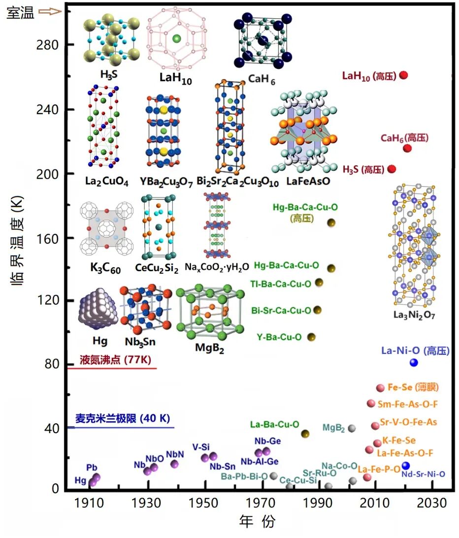 常见的超导材料体系,注意1980年代涌现的铜基、2006年后涌现的铁基以及2023年后涌现的镍基高温超导材料(图片来源:科普中国网)