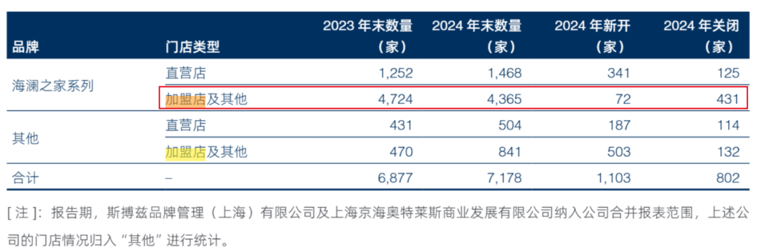 然而,海澜之家系列的加盟店正在减少。财报显示,2022年至2024年,海澜之家系列的加盟店及其他门店分别净关闭57家、164家、359家,三年累计净关闭580家。