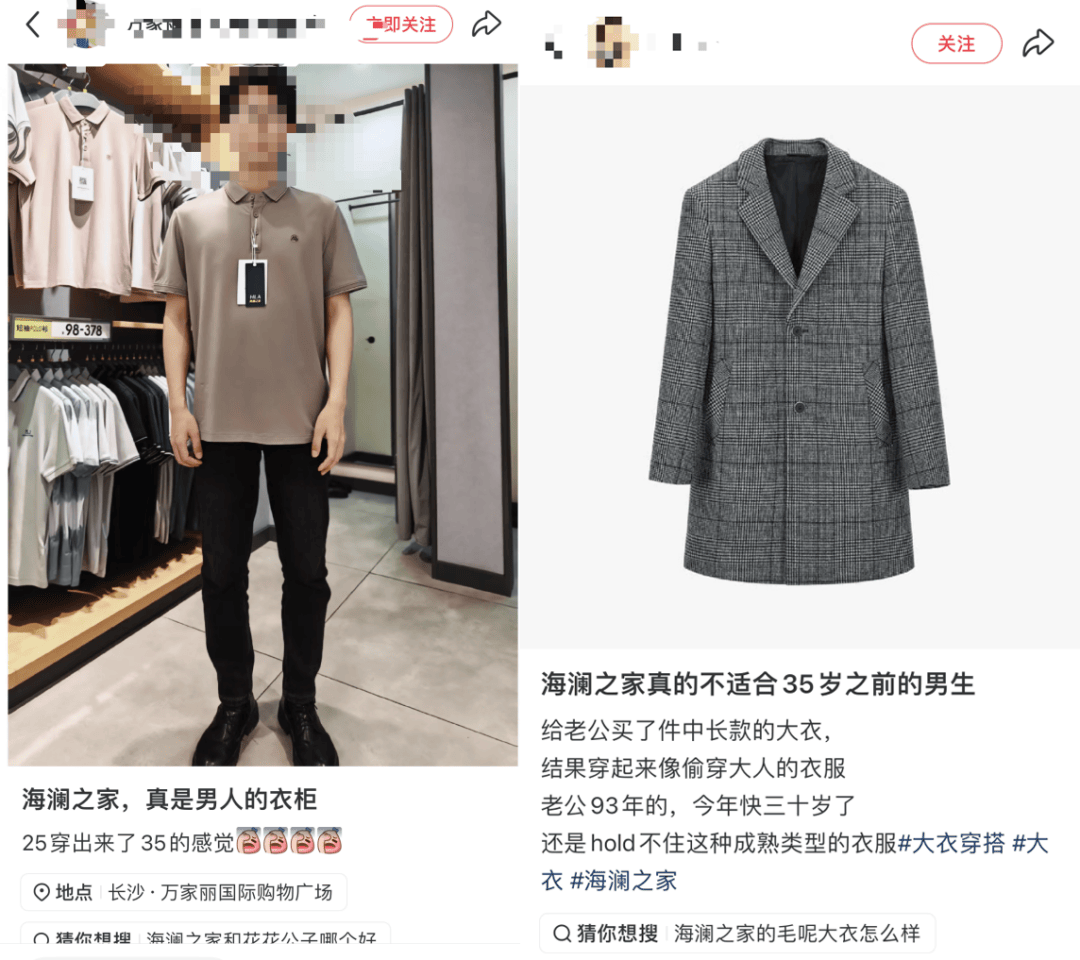 但在个性鲜明、追求差异化的年轻人眼里,海澜之家“太成熟了”——有消费者在社交平台吐槽,“25岁穿着像35岁”、“款式太成熟,不适合35岁之前的男生”。