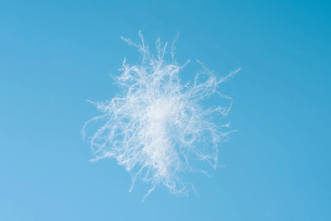 绒子,是一个绒核向四周发射多根丝状物形成的立体结构,从外观上看,就像一个大朵蒲公英,呈现出立体的球状结构。