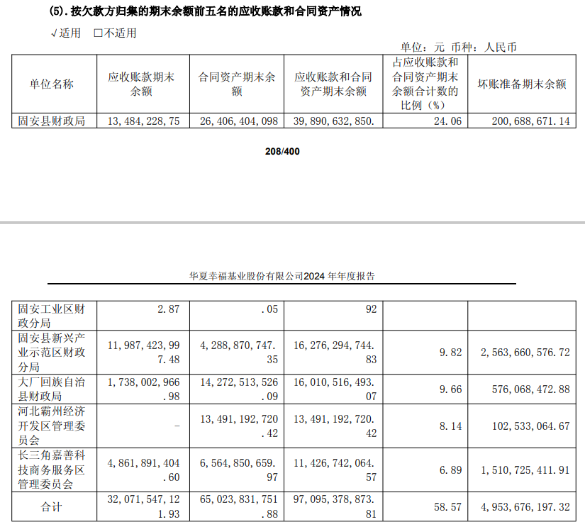 华夏幸福2021年的应收账款是564.93亿元,到2024年的应收账款还有近500亿。