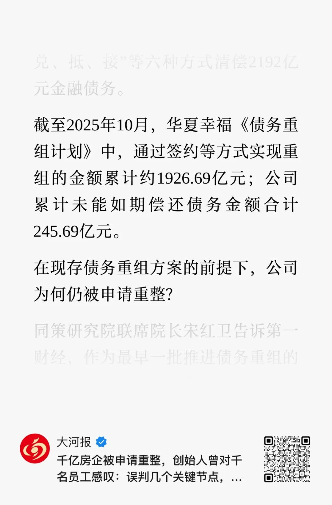 截至2025年10月31日,华夏幸福累计未能如期偿还债务金额合计245.69亿。