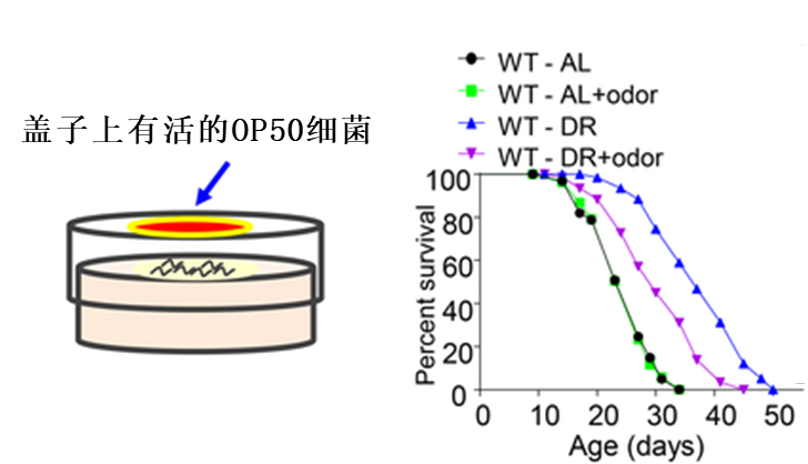 图注:食物来源的气味会削弱DR介导的线虫寿命延长