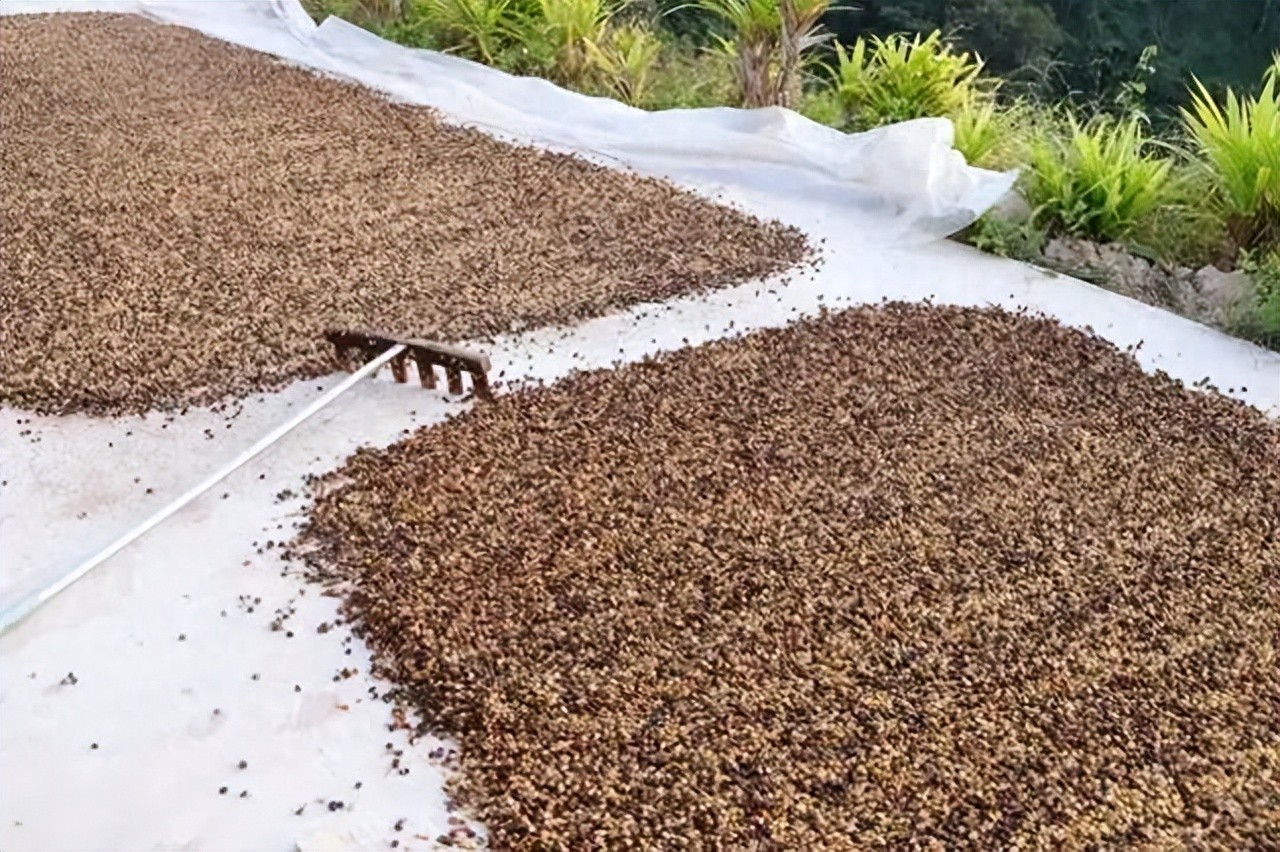 ▲在云南普洱的咖啡庄园,咖啡正在进行日晒处理。