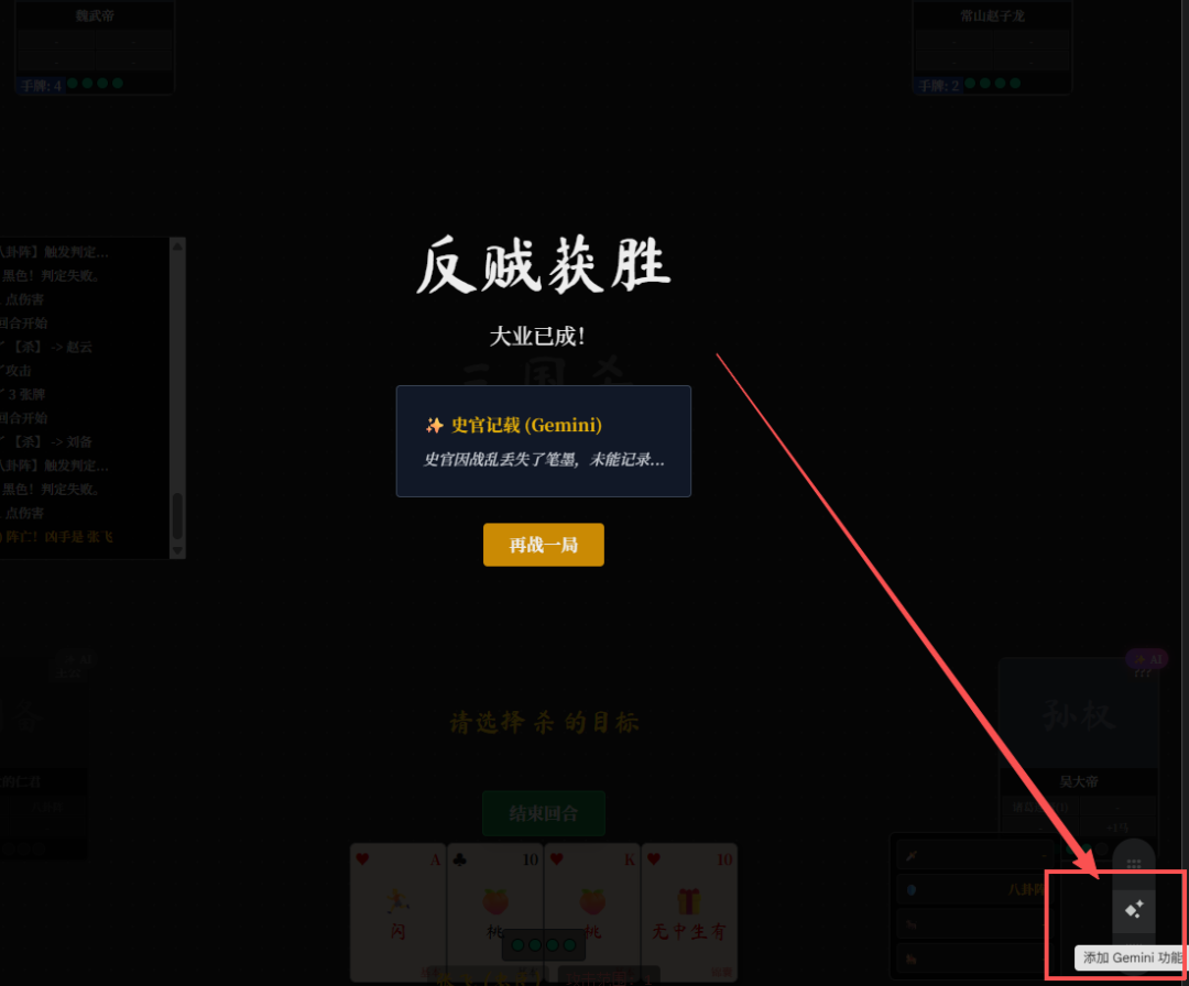 在运行界面的右下角,还有个添加Gemini功能的按钮。意思是,你可以给其中的每个角色接一个Gemini的API。