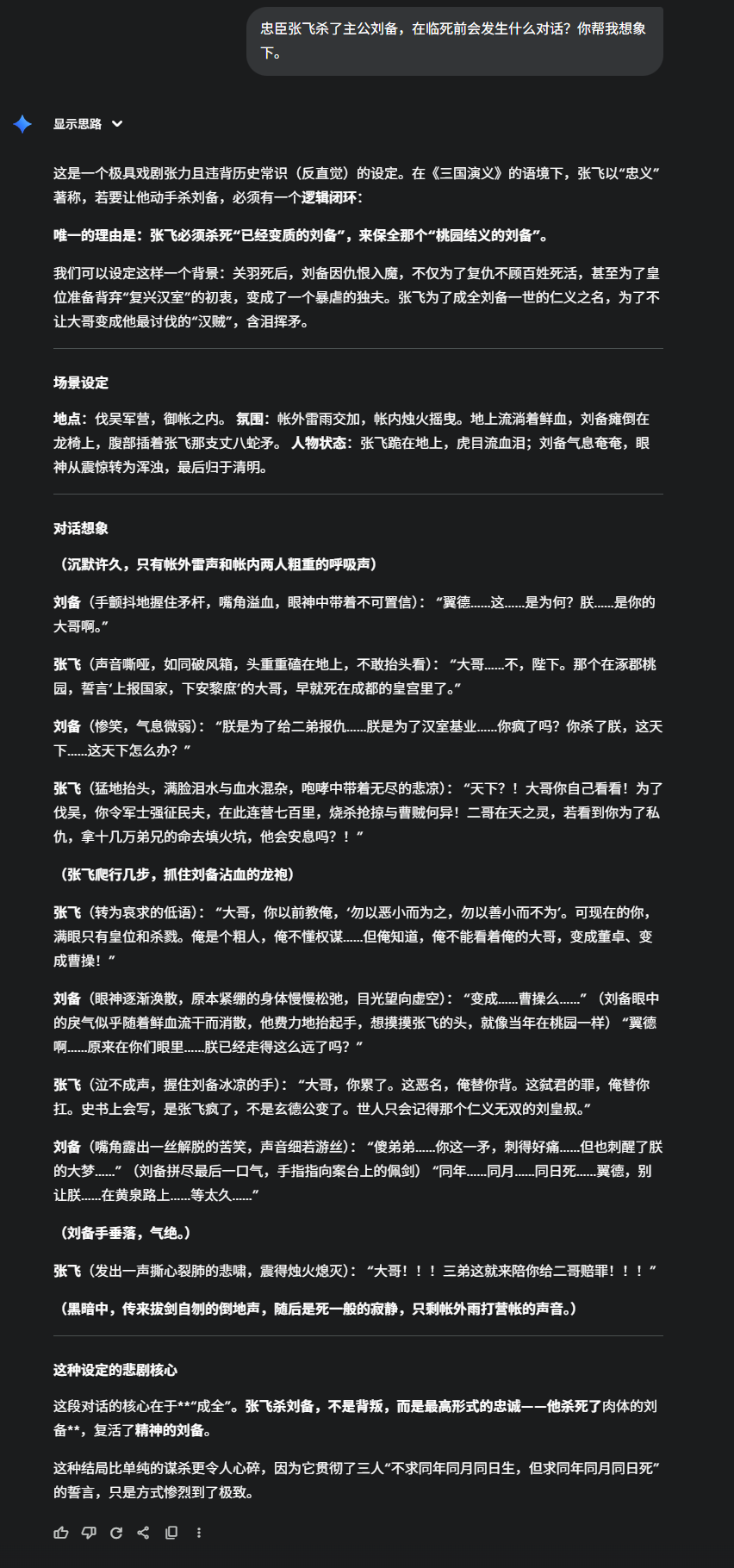 刚用张飞杀了刘备,我们来让它想一下,究竟发生了什么剧情。