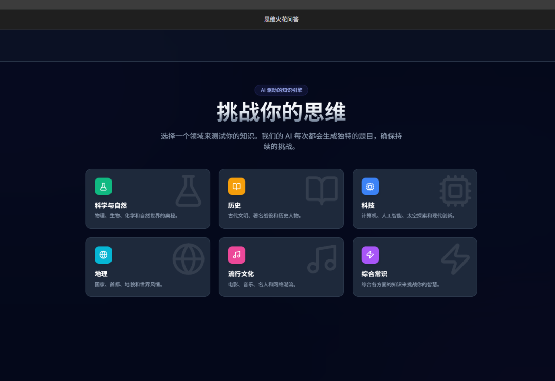 我甚至还能手搓一个知识问答网站,题目直接让AI帮你想,每次刷新,弹出的题目都不一样,而你只需要动动手敲键盘就好了。