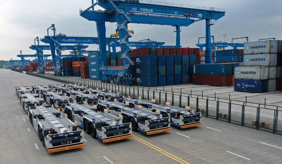 而在全国多个大型港口,由上百辆无人驾驶智能引导运输车混编的运输车队已经可以进行24小时不间断地高效完成集装箱运输任务。
