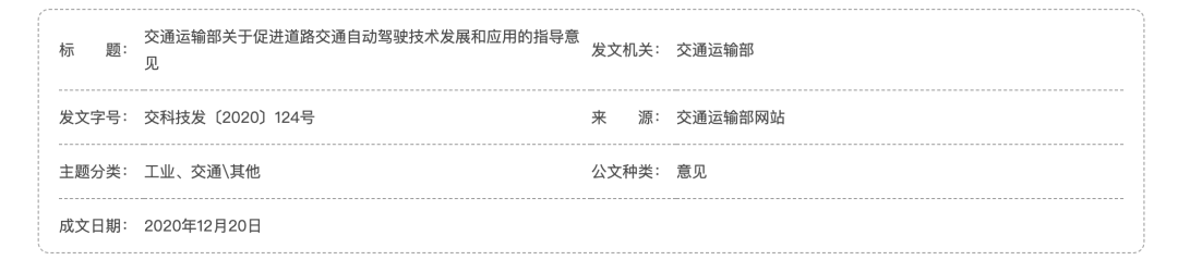 2020年,交通运输部发布相关指导意见,鼓励在港口、机场、物流场站、交通运输基础设施建设工地等环境相对封闭的区域及邮政快递末端配送等场景,**结合生产作业需求,开展自动驾驶载货示范应用,**并在做好风险评估和应急预案的前提下,视情推广至公路货运、城市配送等场景,打造安全、高效、智能的物流运输服务。