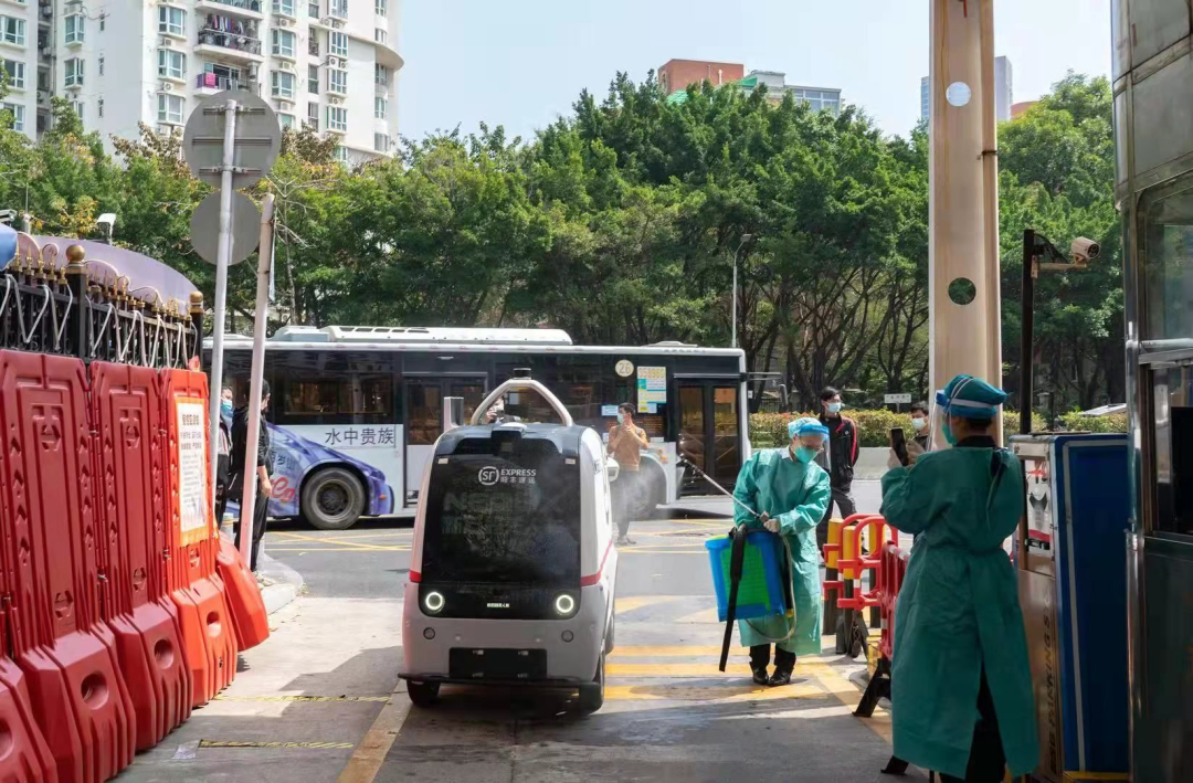 面临人员紧缺、无接触社交等挑战,**无人物流车一夜之间成为社区配送的天选之子,**美团、顺丰先后加入战团,通过技术调试、站点配置和地图信息采集等方式,逐步实现社区内生活、防疫物资的无人配送。
