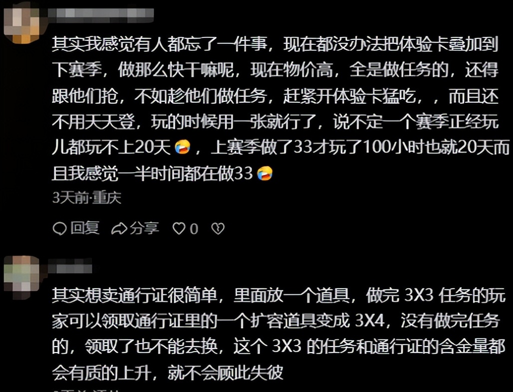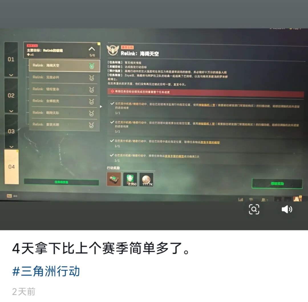 另一个很聪明的改动是,他们把赛季任务里“一命挑战”这类挫败感极强的任务数量大幅缩减了。看似是内容上的减法,对我们玩家来说,却是游戏体验上的加法,至少让我们能玩得起也输得起了。