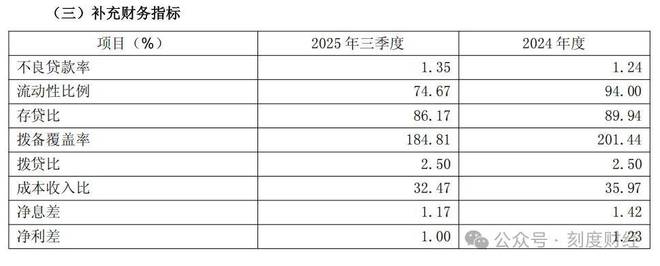 盈利承压之外,资产质量危机同步发酵。截至9月末,该行不良贷款率升至1.35%,损失类贷款激增516%至6.53亿元,关注类贷款规模与占比双升,潜在风险持续积聚;同时拨备覆盖率降至184.81%,低于200%。