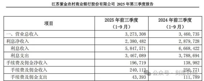 在全部42家A股上市银行中,其净利润、营收与净息差等核心指标均处于尾部区间;在江苏省内9家上市银行里,它是唯一前三季度业绩出现负增长的机构;即便在10家A股上市农商行中,它也因“营收净利双降”而表现不佳。