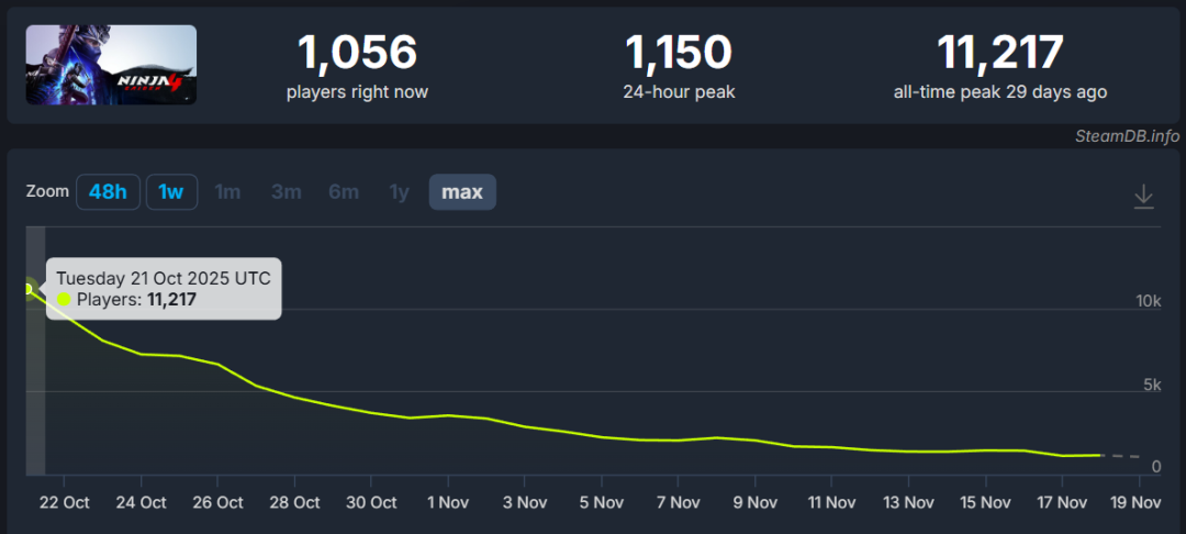 但在几个玩家社区里,倒是有一种声音是整齐划一的,大家纷纷诧异于:忍龙4怎么会这么小众,Steam最高同时在线才一万?