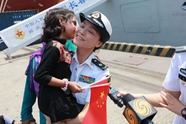 ▲ 这是中国海军“和平方舟”号医院船访问孟加拉国期间,曾被该船医护人员接生的一名女孩与当时的“中国妈妈”重逢的感人瞬间。