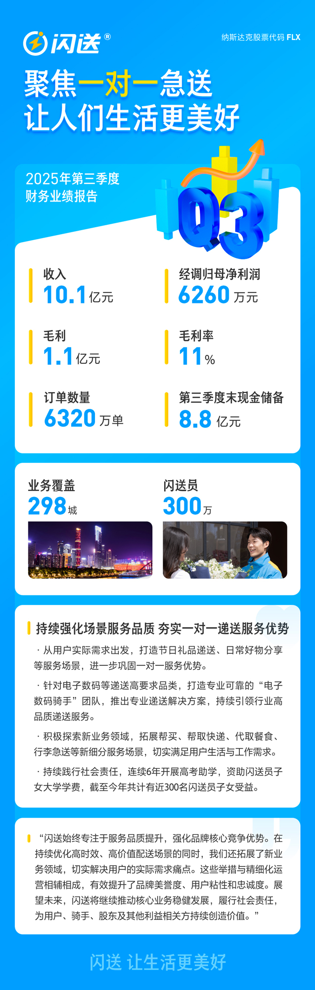 闪送公司2025年三季度营收10.1亿元 经调整净利润达6260万元_风闻